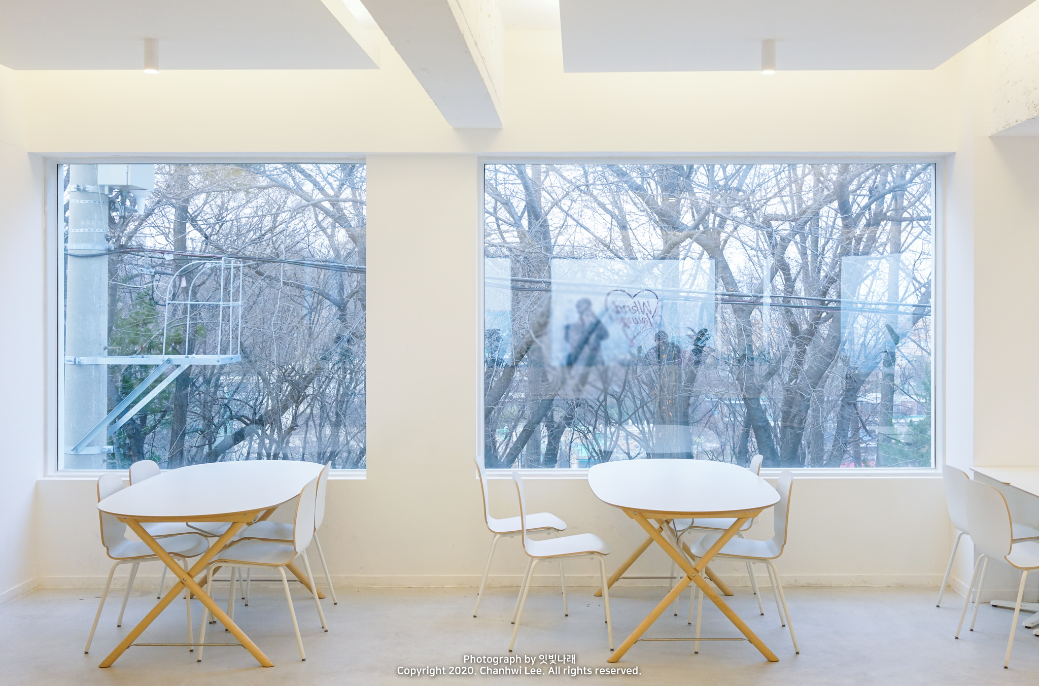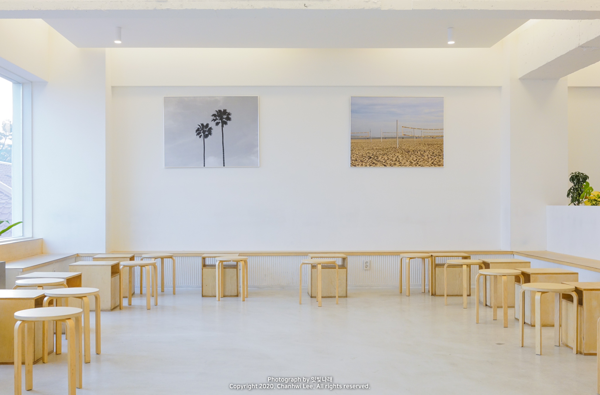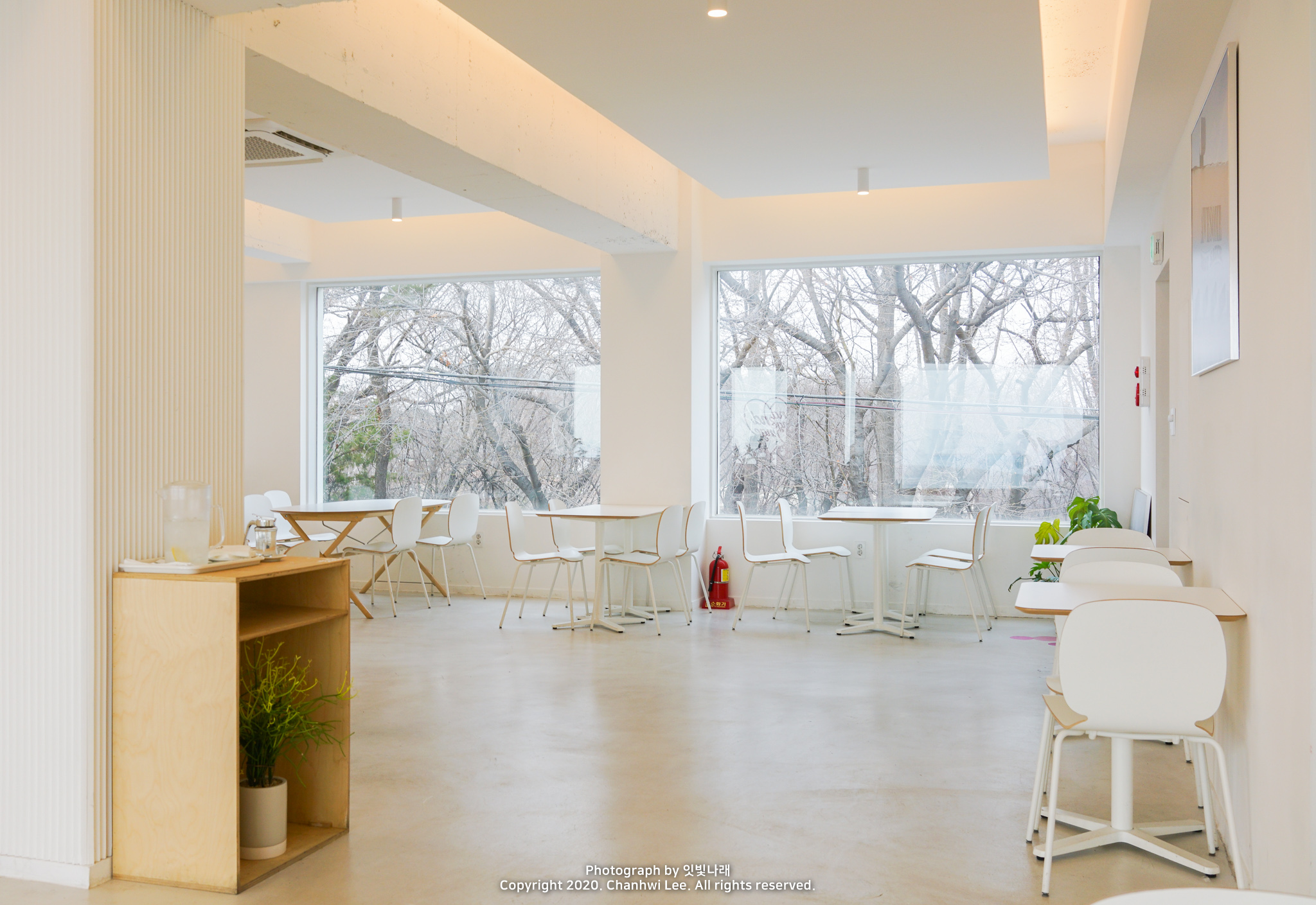 일단 도착하면 건물 전체가 하얗게 칠해져 있어서 금방 눈에 띄어요. 주차는 안 된다고 보면 될 것 같고, 좀 떨어진 곳에 공영주차장이 하나 있긴 한데, 여기도 좀 걸어 올라와야 하는 곳이라서, 편하게 가고 싶으시면 카페 근처에 알아서 잘 주차하시길 추천드리고 싶어요.