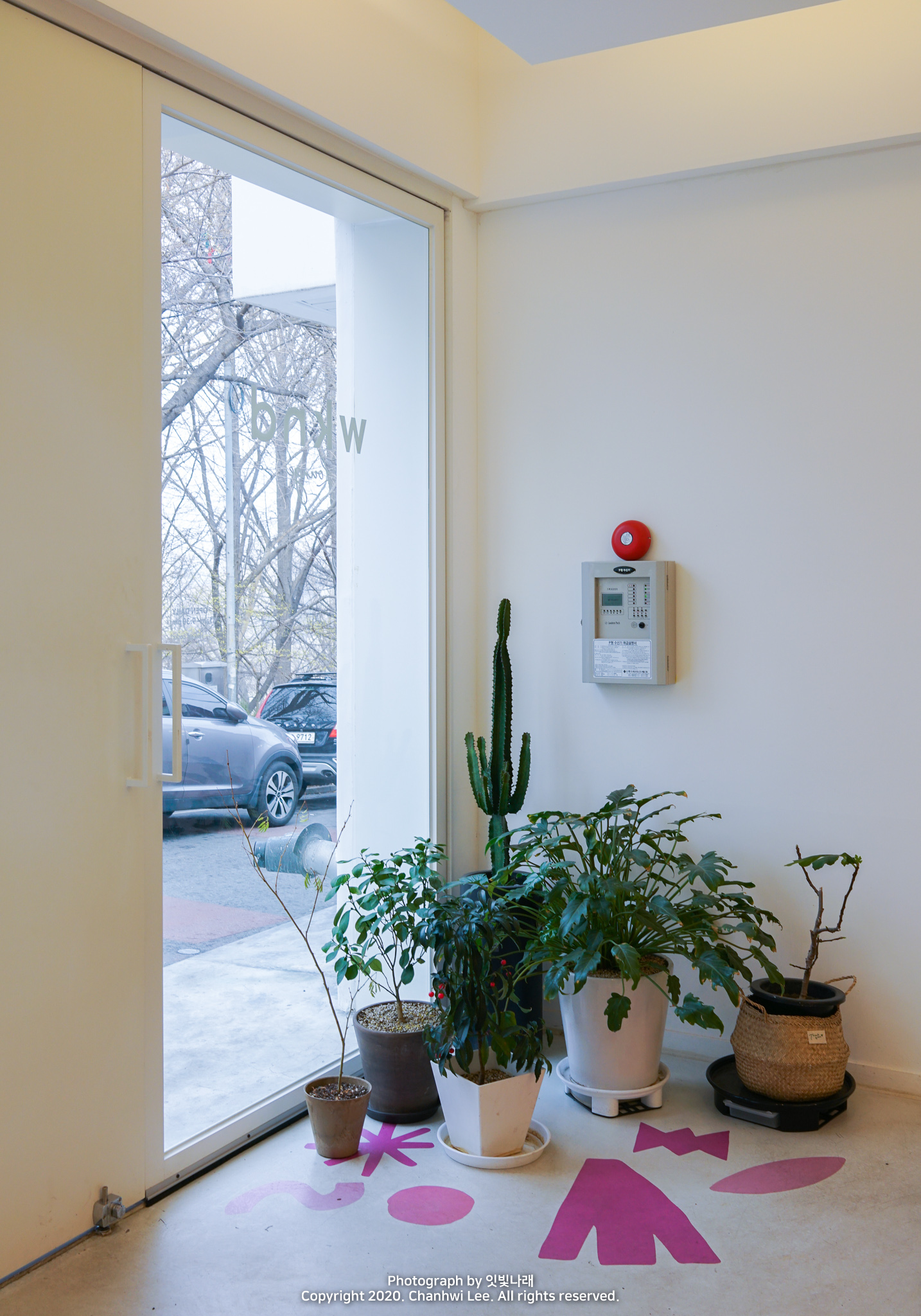 들어오자마자 이것저것 놓여있던 화분들, 안쪽도 전체가 흰색 톤으로 잘 맞춰져 있어서 깔끔한 느낌.