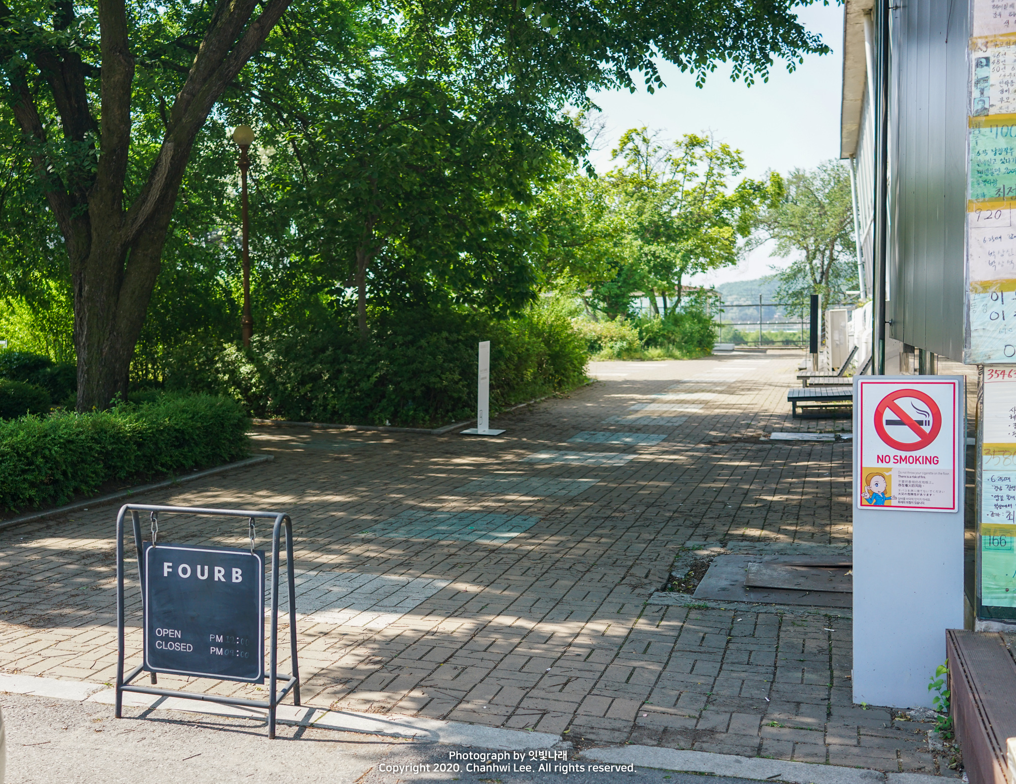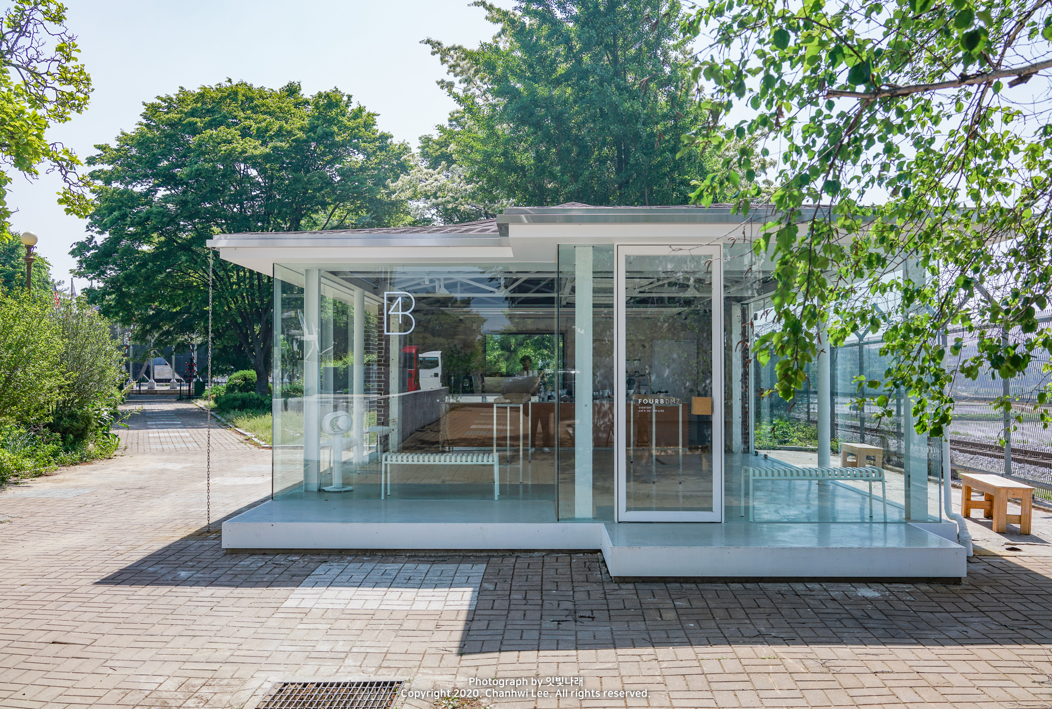 그리고 왼쪽을 보면, 이렇게 숨겨진 카페가 하나 자리잡고 있어요. 통유리로 되어 있어서 엄청 시원해 보이는 느낌.