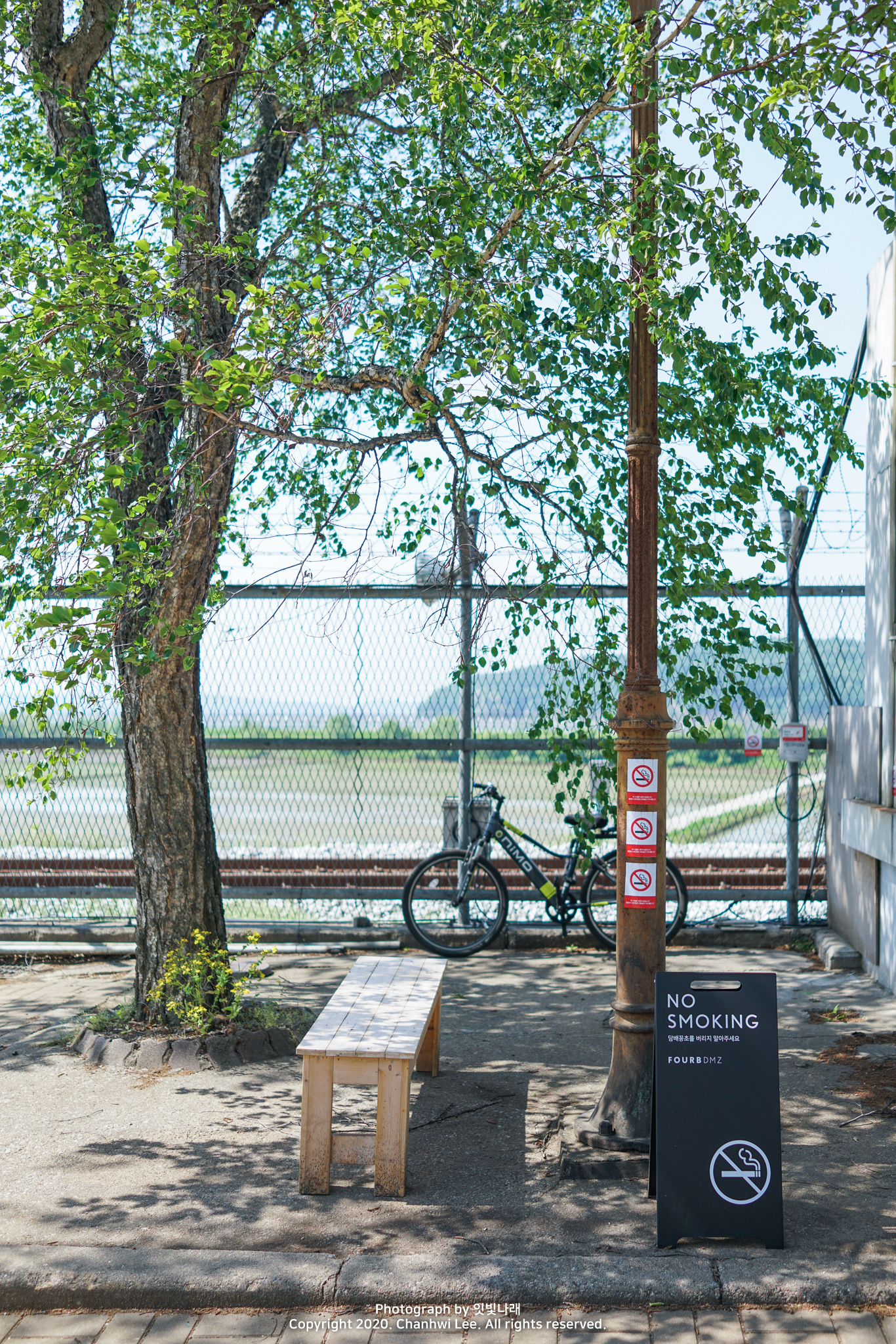 길을 따라 잠깐만 들어가면, 이렇게 철조망이 있는 곳이 나오고, 앞에 포비 DMZ 입간판 같은 것도 세워져 있어요.