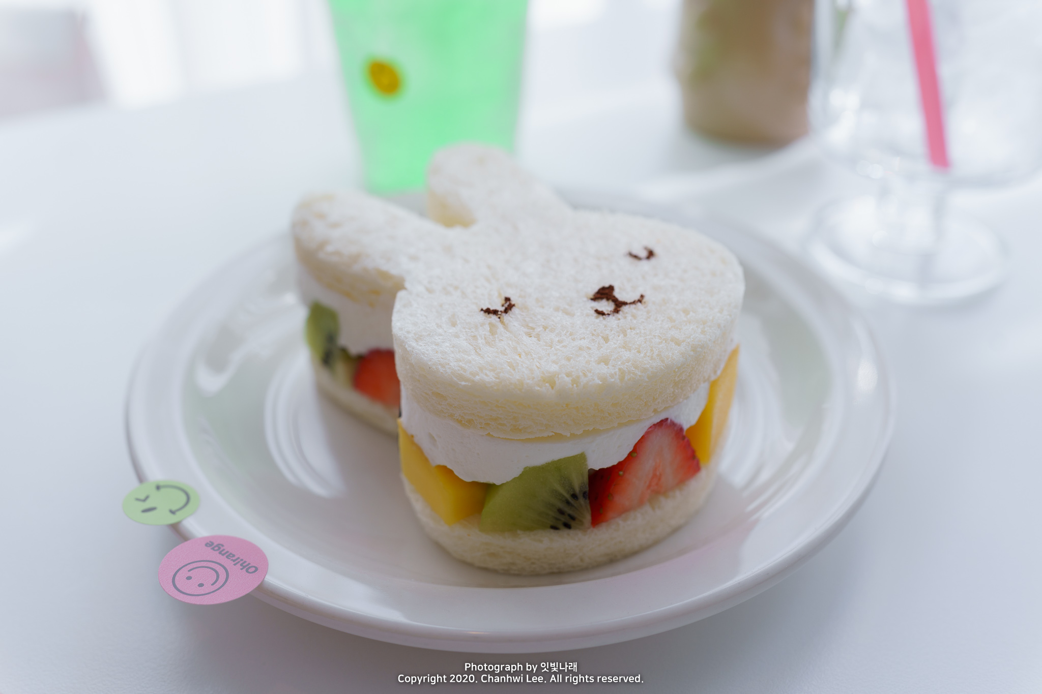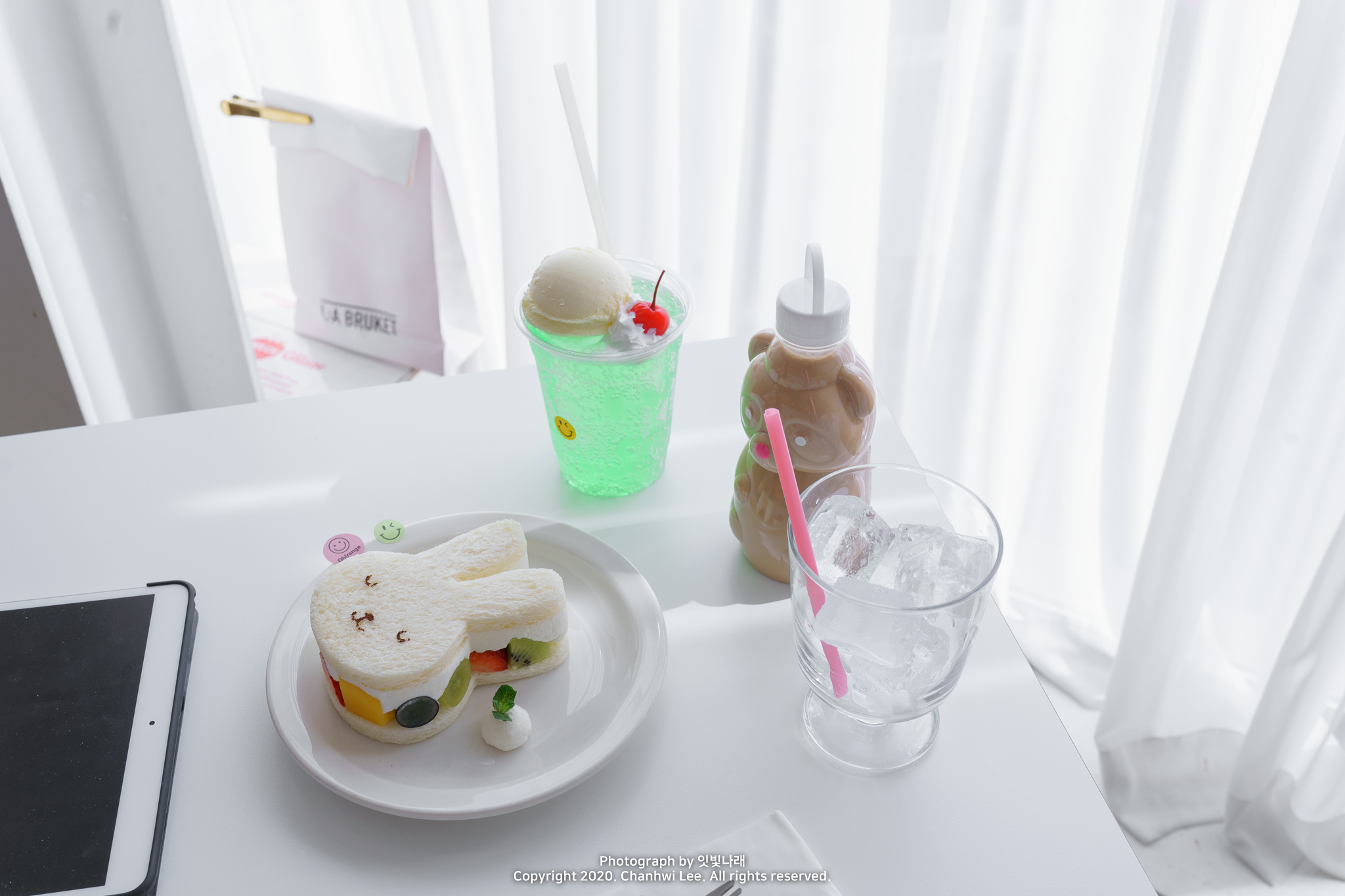 신선한 과일과 귀여운 비주얼, 그리고 크림이 잘 어울리는 샌드위치예요. 모양을 생각하면 가격도 괜찮다는 느낌이랄까. 가장 힘들었던 게 처음 어디를 자를지였으니까요. 멜론소다나 밀크티도 맛집 수준은 아니지만 보통은 되는 느낌.
