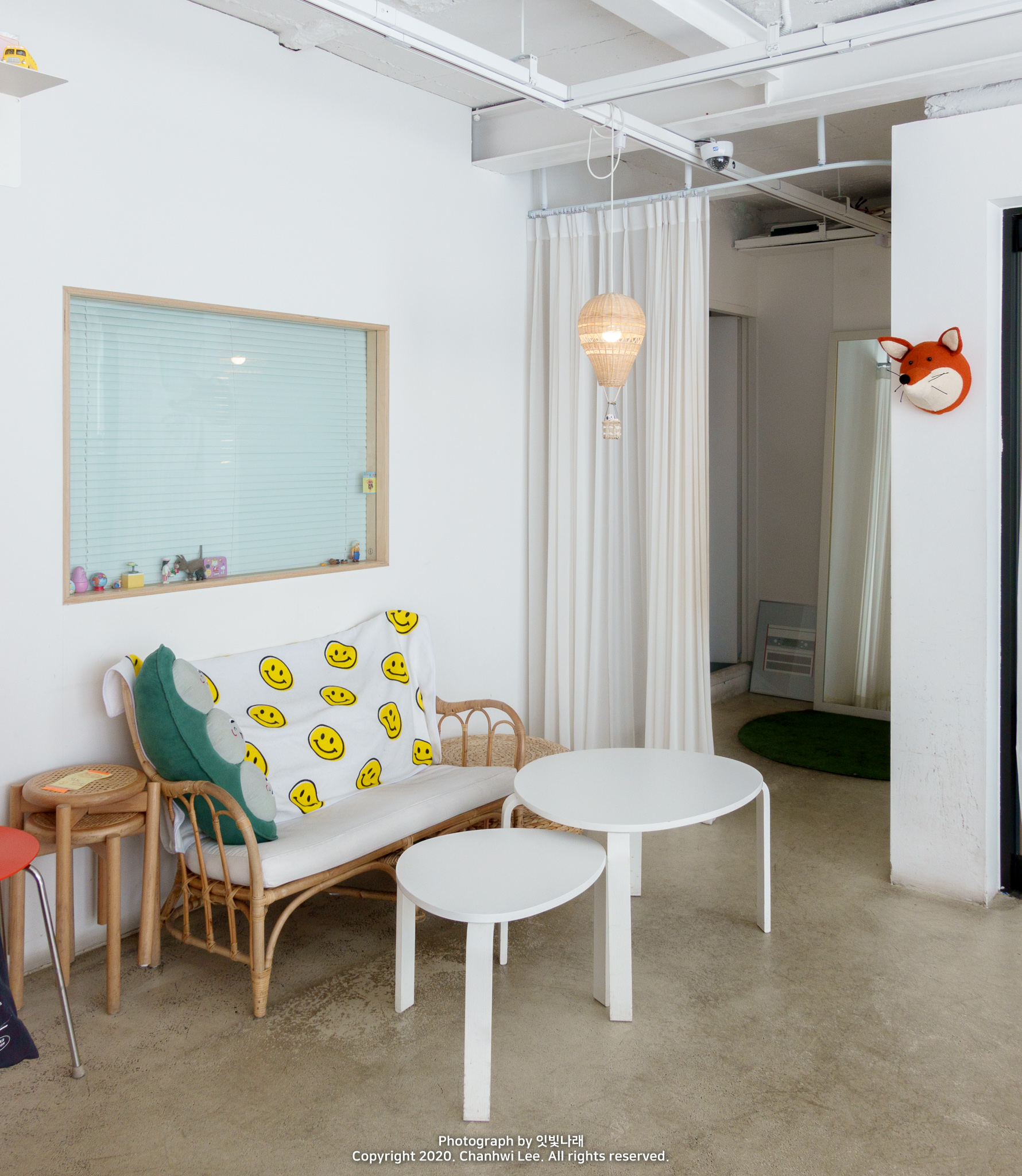 낮이라서 그런가, 이렇게 한쪽에서 빛이 한가득 들어와요 :) 반투명한 흰색 커튼으로 가려놓으셨는데도 이 정도, 사진 찍기도 참 좋은 곳이었어요.