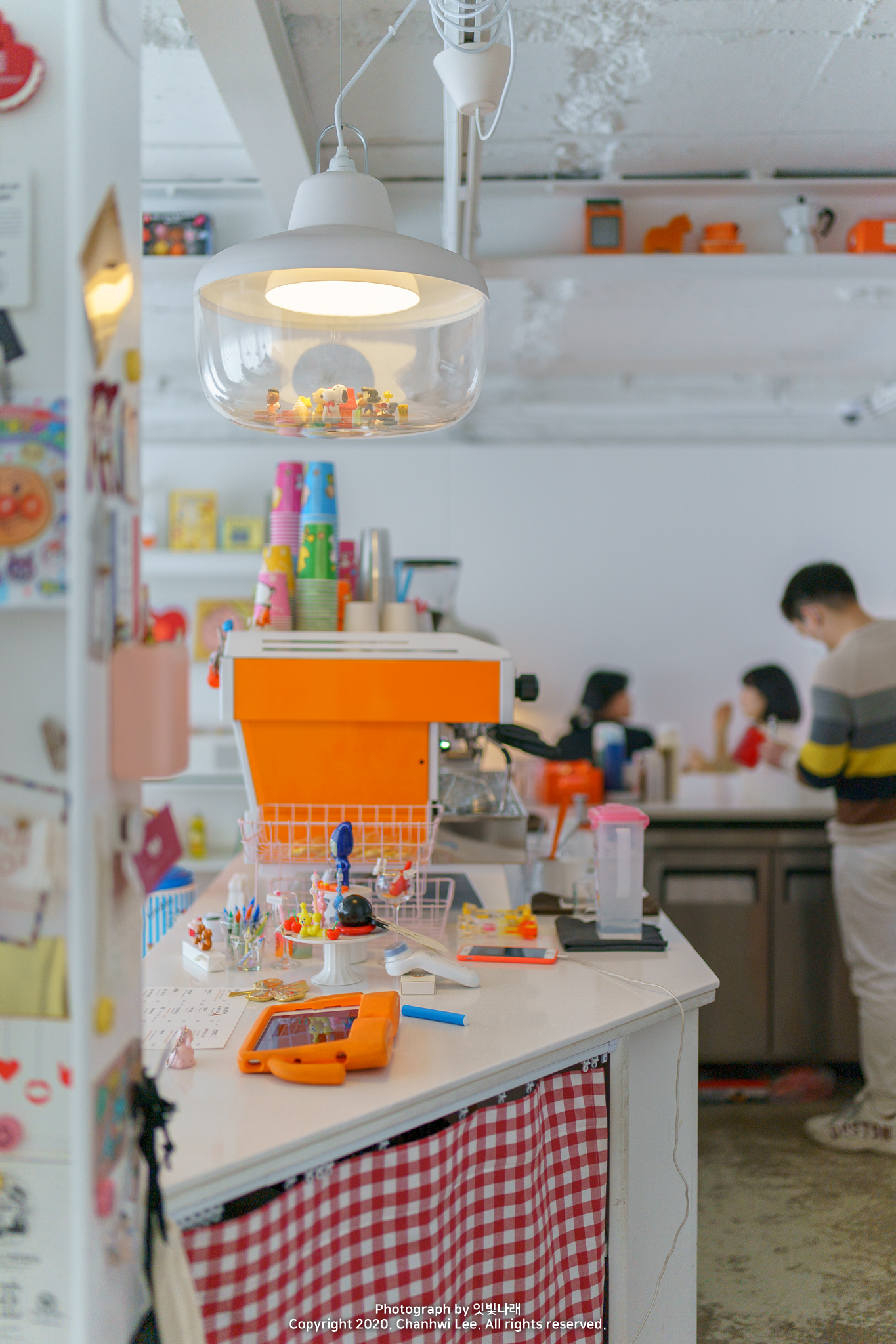 여기가 카운터예요. 카운터 위 등 안에도 소품들이 가득해요. 저 멀리서 만들고 계신 사장님은 덤.