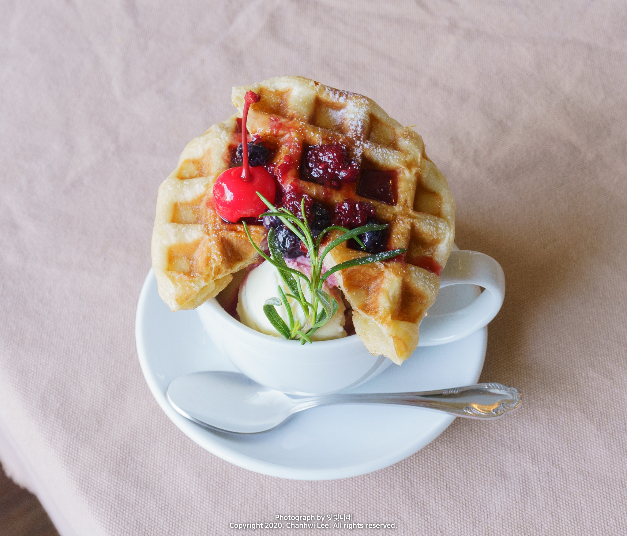 기다리니 가져다주신 와포가토, 와플은 손으로 드시면 되고, 중간중간 아포가토에 찍어서 드셔도 맛있어요.